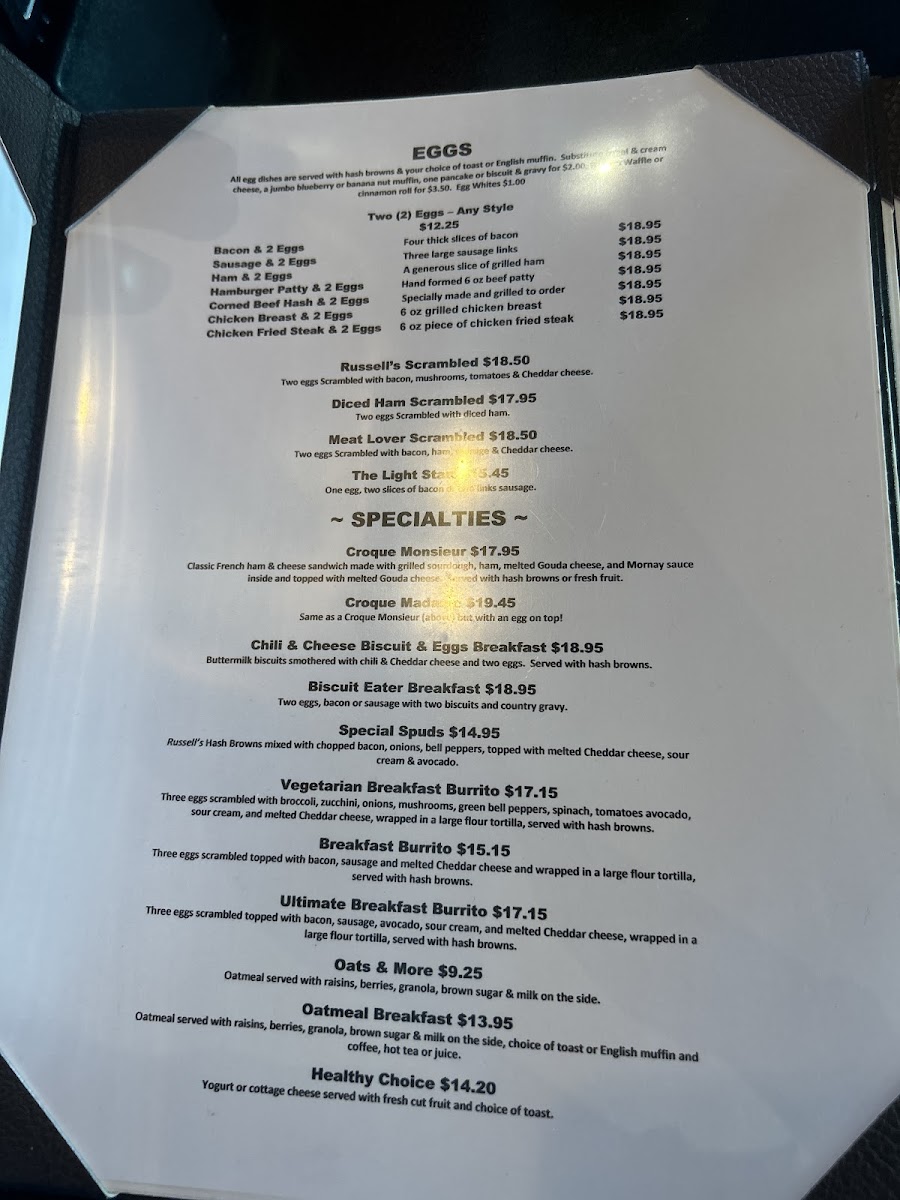 Welcome to Russell's, a cherished breakfast haven in Pasadena located at 30 N Fair Oaks Ave. This vibrant eatery seamlessly combines comfort and creativity, serving up enticing dishes that beckon locals and visitors alike. With a menu alive with flavor, Russell's offers an array of standout items, from fluffy omelettes to decadent French toast and their signature cinnamon rolls, which are touted as the ultimate indulgence—soft, gooey, and generously spiced.